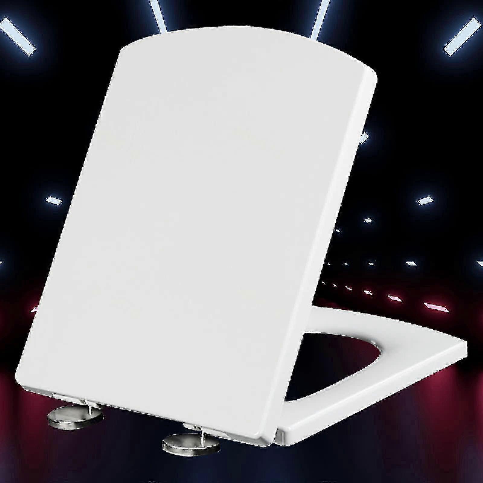 White square toilet seat with softclose mechanism, adjustable hinges, quickrelease fastening, and fixing, 34.5 x 43 cm.