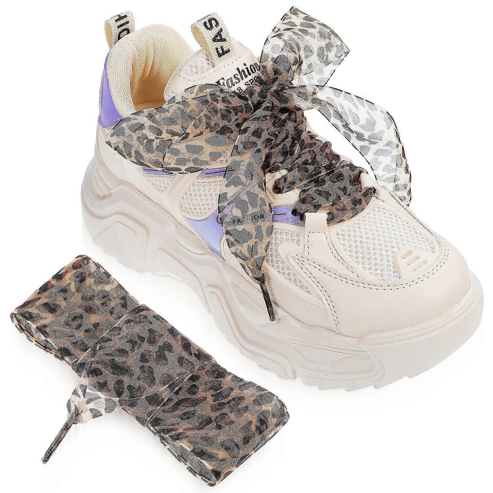 Wide Flat Leopard Print Shoelaces 2pcs Vibrant Replacement Laces for Sneakers, Casual & Formal Shoes, Easy Threading & Adaptable Style