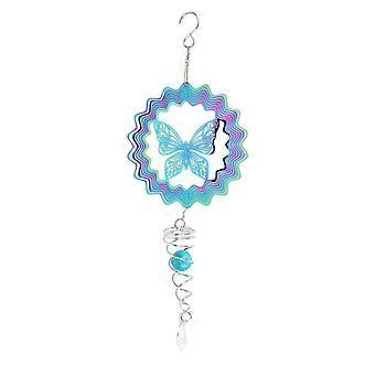Wind Spinner Gradient Color Decorative Metal 3D Wind Spinner Sculpture with Ball Spiral Tail for Gar