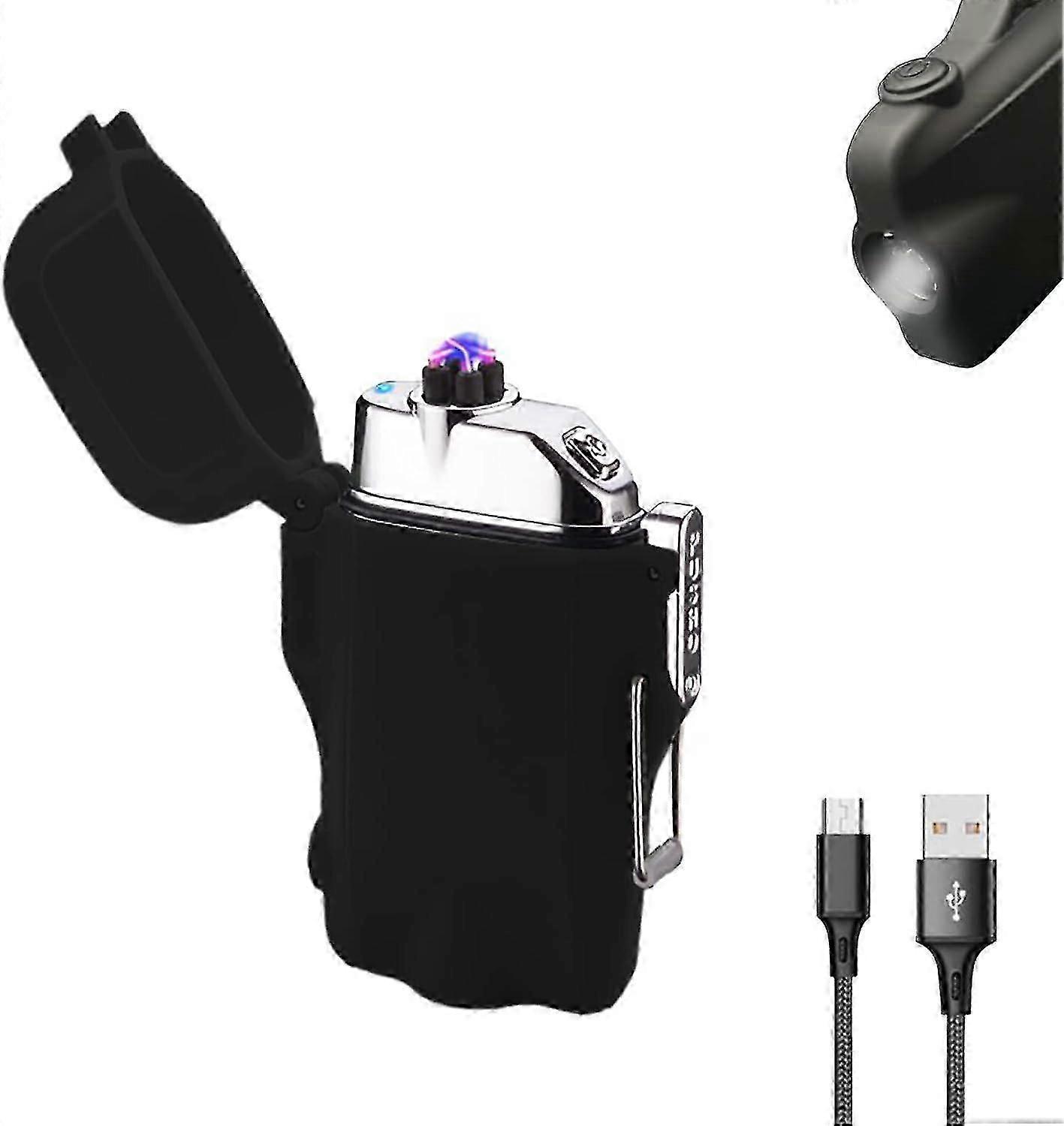Windproof Lighter, Waterproof Lighter Dual Arc Lighter Electric Lighter With Led Flashlight, Rechargeable Usb Lighter Flameless Plasma Lighter With La