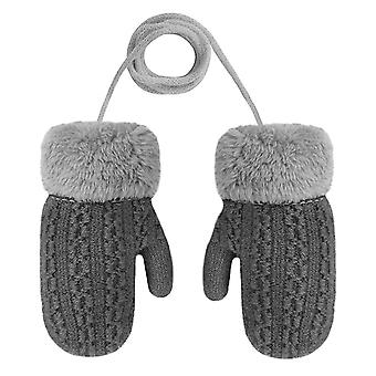 Winter Knitted Gloves With Hang Neck String Thickened Plush Gloves For Child