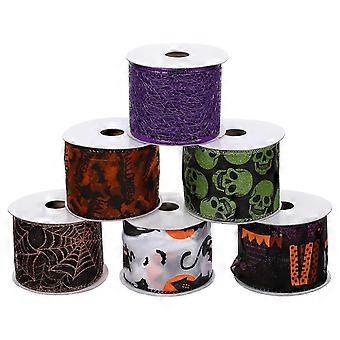 Wired Edge Ribbons Halloween Design Assorted Color 540X6.3cm Floral Projects 6 Rolls
