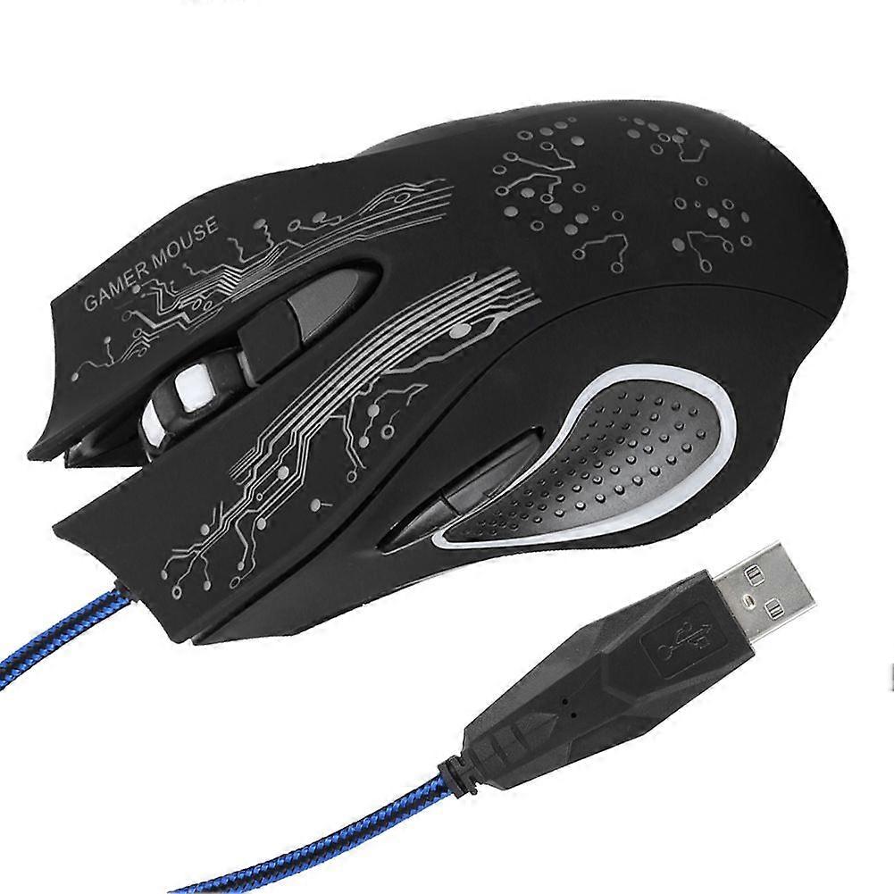 Wired Mouse LED Luminous 6 Key USB Home Office Gaming Universal Computer Accessories X11Black