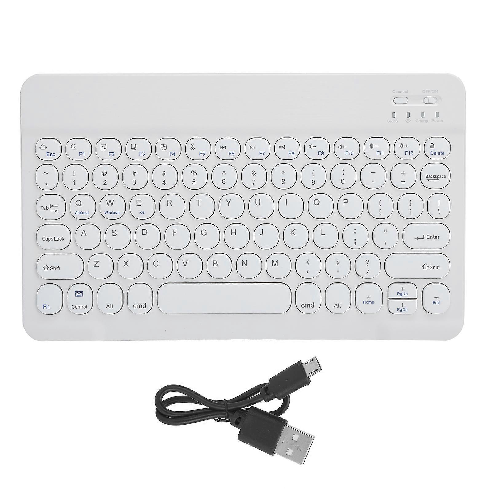 Wireless Bluetooth Keyboard Tablet Smartphone Computer Accessories Round Cap 10inWhite