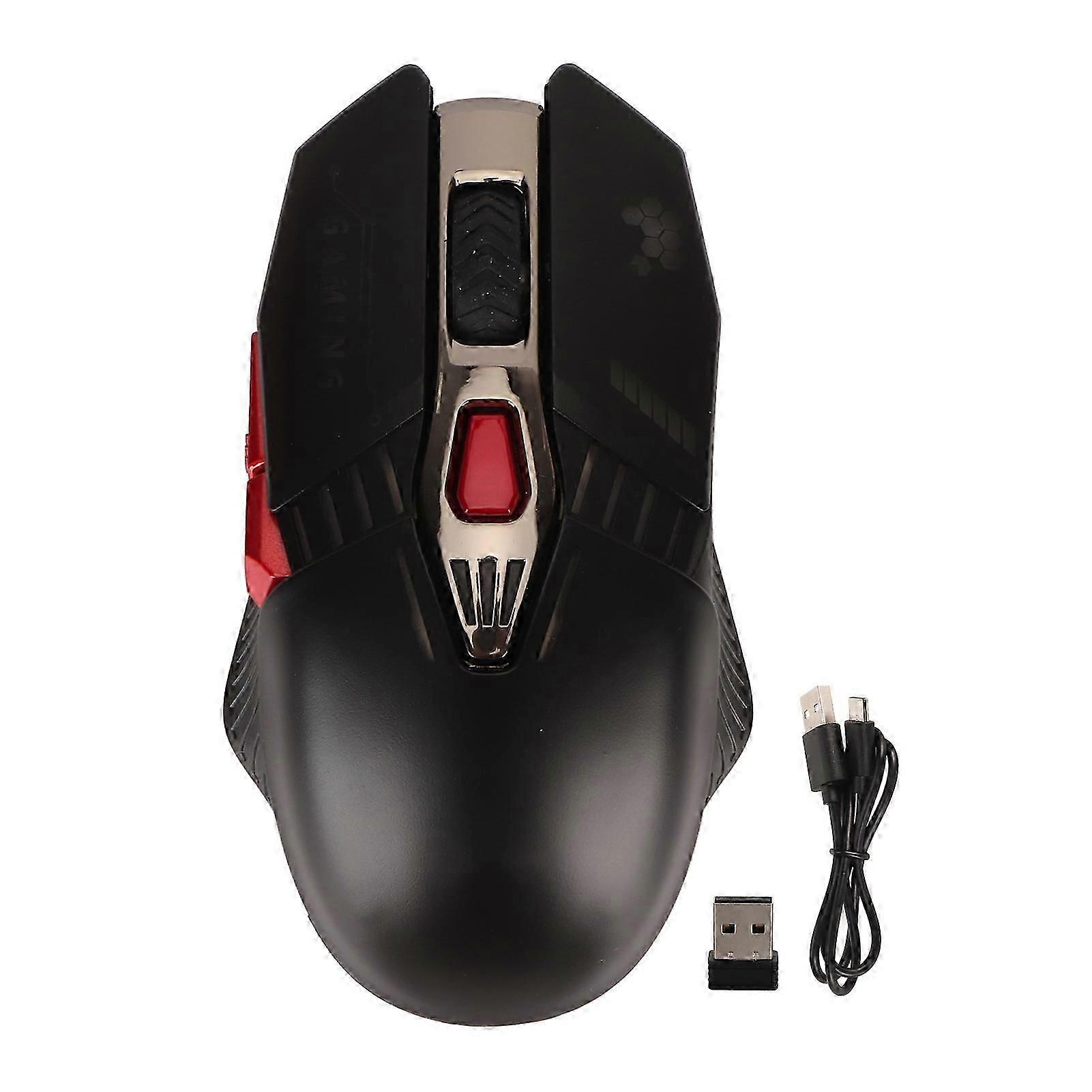Features: 1.4 Level DPI: The wireless gaming mouse features 4 adjustable DPI levels (800, 1200, 1600, 2400 DPI), allowing for easy switching to adapt to different work and gaming situations. 2.Fully Programmable: With the ability to remap buttons, assign complex macro functions, change RGB backlighting effects and speed, the mouse can be customized to meet individual preferences and requirements. 3.Ergonomic Design: The mouse's mechanical appearance and ergonomic design provide a comfortable grip, allowing for long term use without fatigue. 4.RGB Backlighting: The RGB lighting effects are programmable, allowing you to customize the lighting to your liking and enhance the gaming ambience. 5.Rechargeable: The mouse has built in 400mAh rechargeable lithium battery, with Type C charging interface. It automatically enters sleep mode after 1 minute of inactivity, ensuring efficient power usage. specification:Item Type: Gaming Mouse Material: ABS DPI: 800, 1200, 1600, 2400 Battery Capacity: 400mAh Lithium Battery (included) Charging Interface: Type C Size: Approx. 129 x 74 x 41mm / 5.1 x 2.9 x 1.6in PackageList:1 x GamingMouse (Shipped with Built in Battery) 1 x USB Receiver 1 x Charging Cable