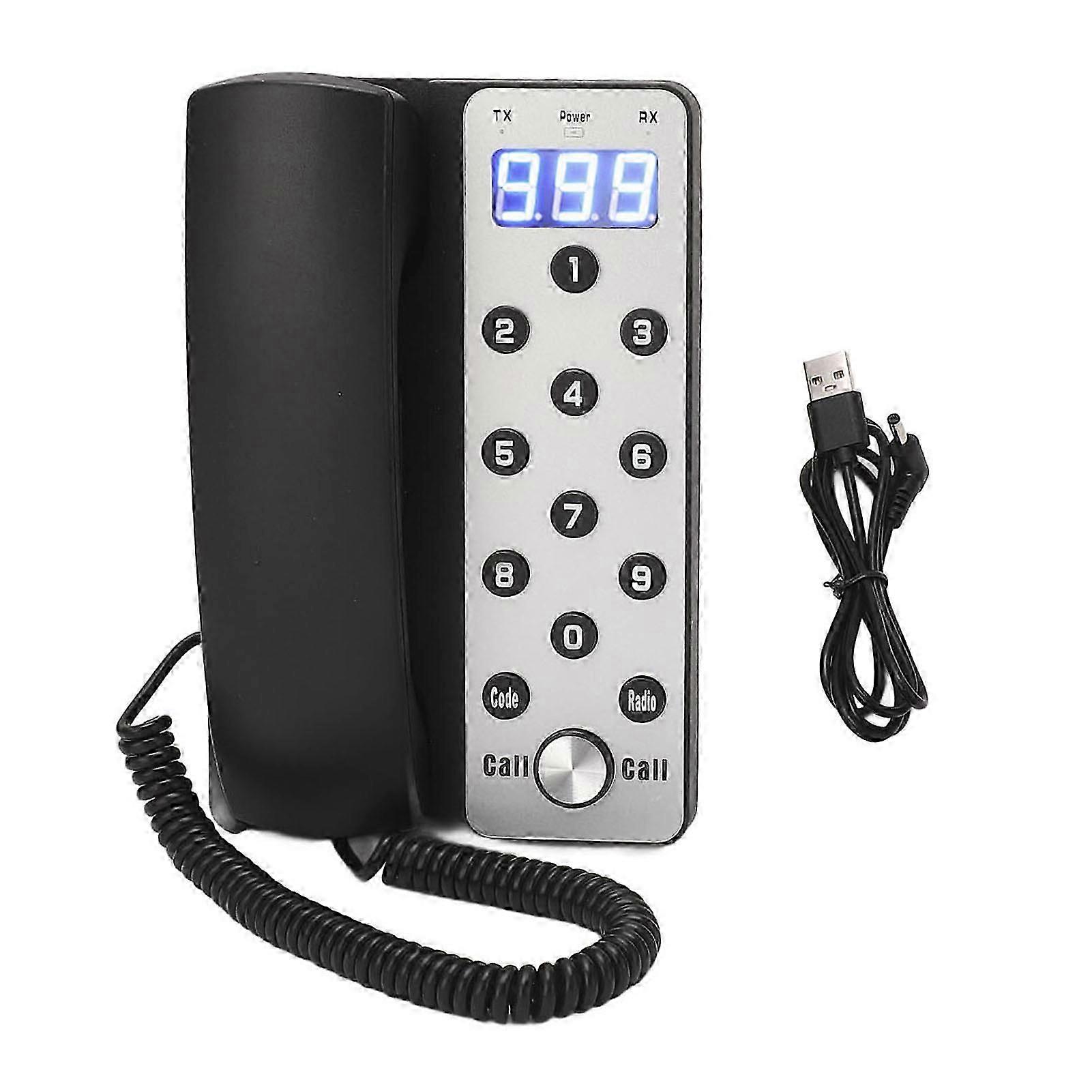 Feature:1. [Wireless Intercom System] Conveniently communicate with others in your business or office without the need for cumbersome wiring installations.2. [1000m Range Intercom] Enjoy long distance communication up to 1000m (without any obstacles), allowing you to stay connected throughout your large work space.3. [Stable Transmission] Operating at a frequency of 433MHz, this intercom telephone ensures stable signal transmission and delivers clear sound quality for effective communication.4. [Digital Display] Equipped with a digital display, this wireless intercom phone can show your own number and caller ID, adding convenience.5. [Wide Range of Uses] Suitable for various environments such as companies, factories, hotels, offices, teahouses, KTVs, hospitals, and entertainment venues.Specification:Item Type: Wireless Intercom PhoneMaterial: ABSOperating Frequency: 433MHzOperating Distance: Approx. 1000m/3280.8ft (without any obstacles)Power: 2WVoltage: 5V 2ANetworking Group: Up to 999Installation Method: Free installation on the desktop.Package List:1 x Host1 x Instruction Manual1 x Data Cable