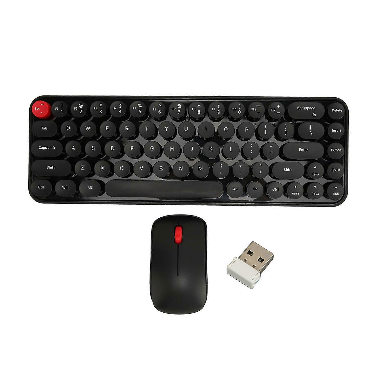 Wireless Keyboard Mouse Combo Mini Portable Retro Silent 2.4G Wireless 68 Keys Office Keyboard Mouse Set Black