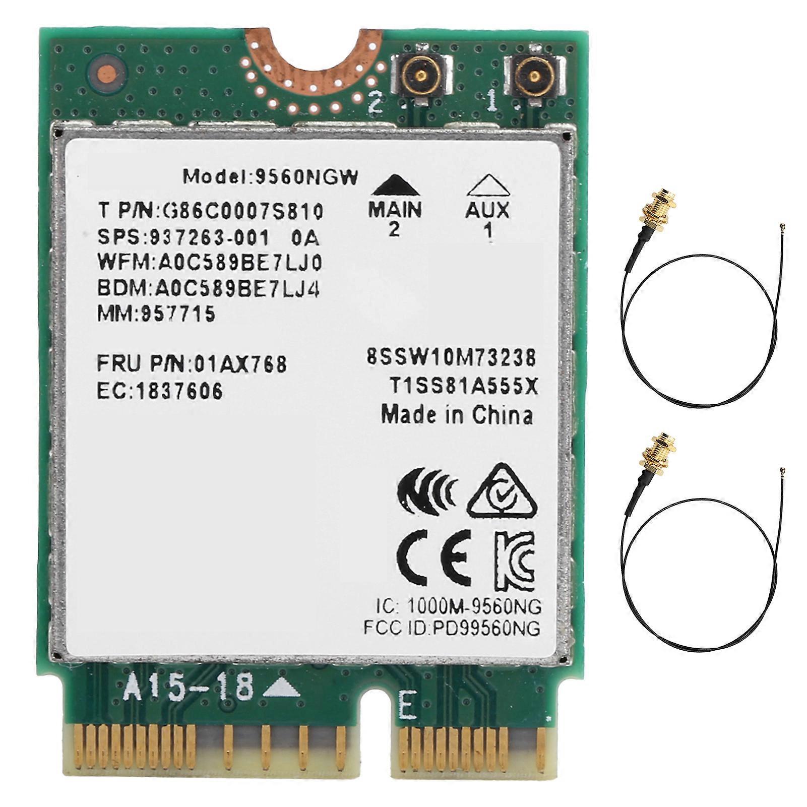Wireless Network Card Bluetooth5.0 802.11ac M.2 Wifi Adapter with Antenna 9560NGW 1730Mbps2Pcs External Antenna Cables