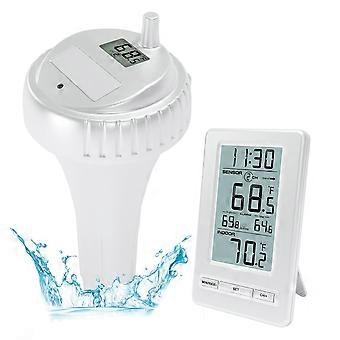 Smart Wireless Pool Thermometer: Monitor water temperatures effortlessly with a 328ft wireless range. Features a 3.54inch extra-large backlit screen displaying both pool and indoor temperatures accurately from -40℉ to 140℉ (-40℃ to 60℃). Enjoy the convenience of checking water temperatures from anywhere in your home, avoiding unnecessary trips outside IPX8 Waterproof with Buoy Design: Engineered for versatility, this thermometer is perfect for various water bodies including pools, , fish tanks, and more. It boasts dual silicone seals and a tapered float design that ensures it never tips over. Powered by both solar and battery, it remains operational in all weather conditions Smart Alerts and 24-Hour Temperature Logging: Stay informed with instant alerts for abnormal temperatures. Features high/low temperature alarms and a timer to safeguard against extreme temperatures. Automatically logs daily maximum and minimum temperatures, and includes a 5-second backlight for clear readings at night :Temperature Sensor (The product printed words depending on the batch, but this does not affect use) Color: As Shown Material: ABS Package Contents: 1 x sensor 1 x display Only the above package content, other products are not included. Note: Light reflection and different displays may cause the color of the item in the picture a little different from the real thing. The measurement allowed error is +/- 1-3cm.