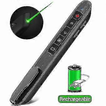 Wireless Presentation Remote with Rechargeable Battery for PowerPoint and PC Use Green Laser Pointer Clicker Control Tool