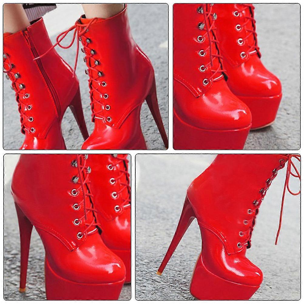 Women High Heel Boots Lacing Boots For Nightclub Events Red Color With Non-Slip Feature 1 Pair