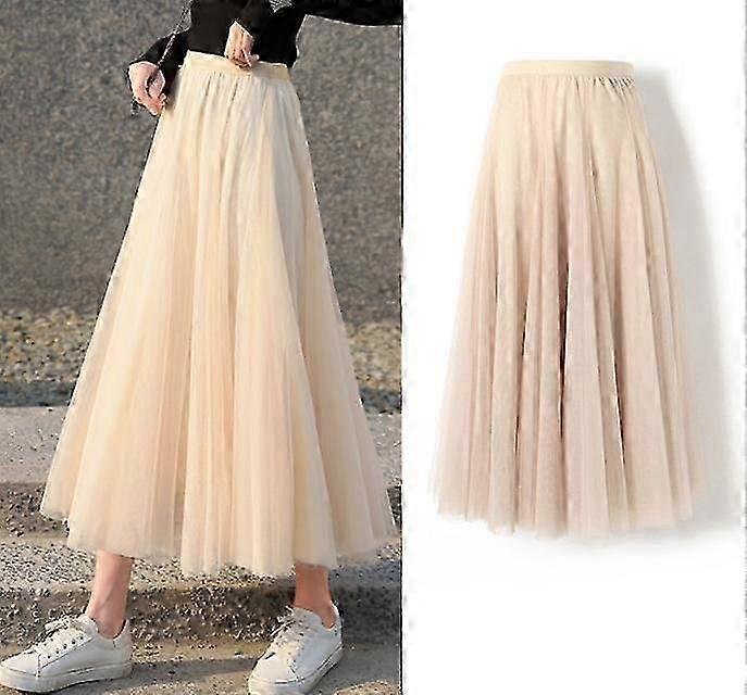 Women Solid High Waisted Skirt Many Colors Mesh Tulle A-line Midi Skirt With Lining for Spring Summer