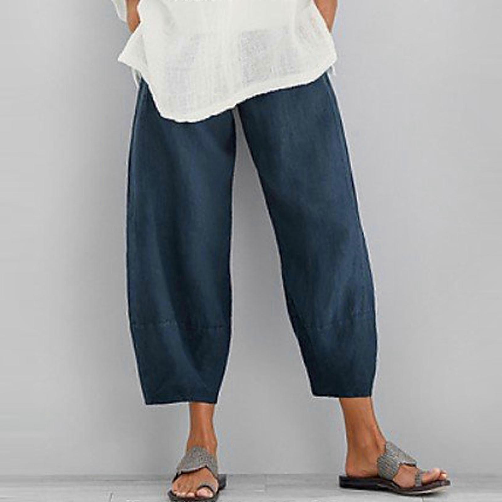 Women's Casual Summer Wide-Leg Pants Made of Cotton and Linen with Solid Color Design