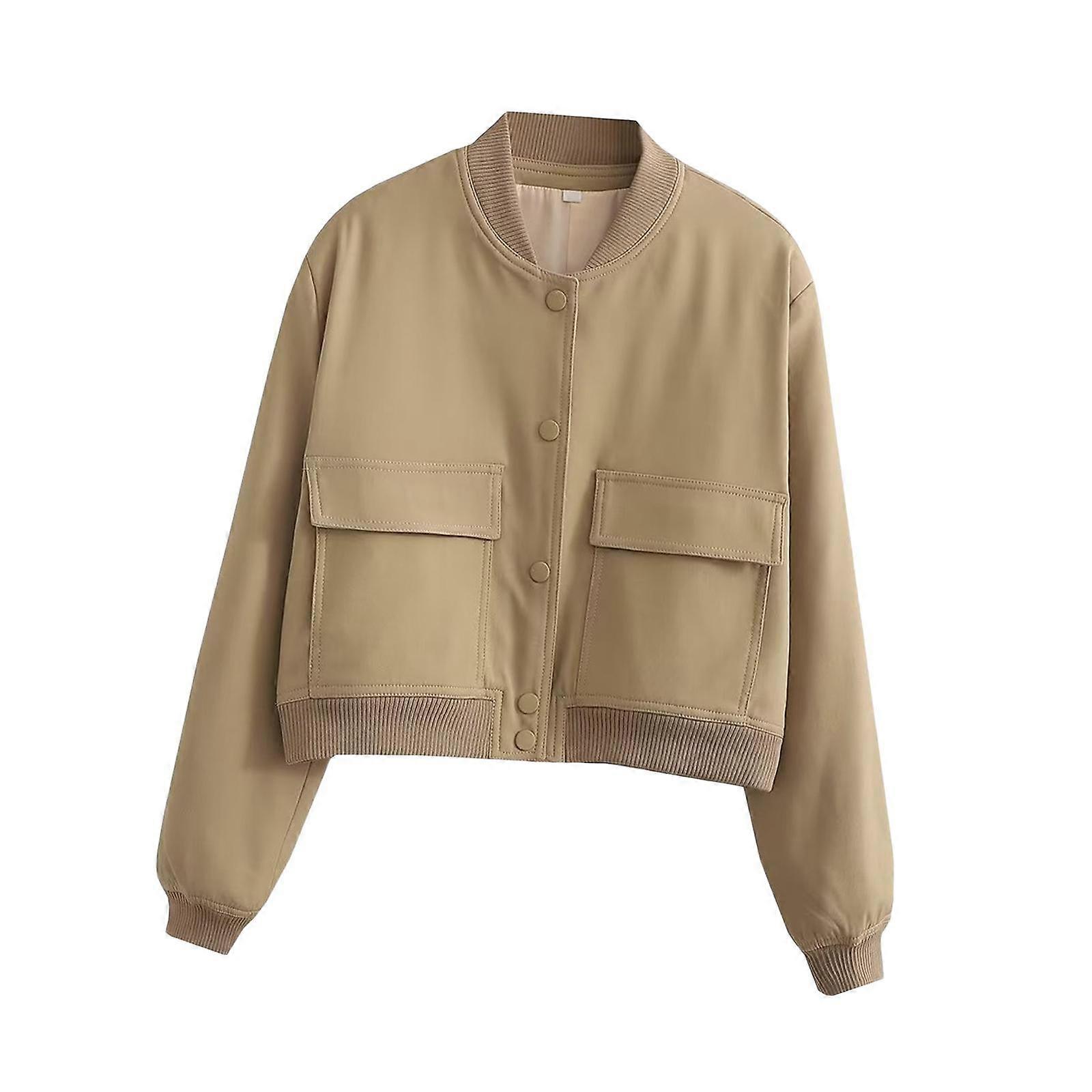 Women's Jacket Female Jacket Classic with Pockets Snap Button Solid Cropped
