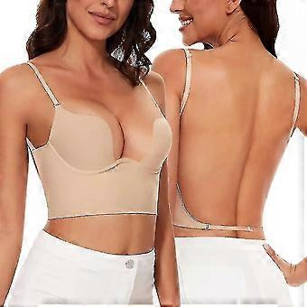 Women's Low Back Bra - Seamless Deep U Plunge, Convertible Multiway Halter & Open Back Design