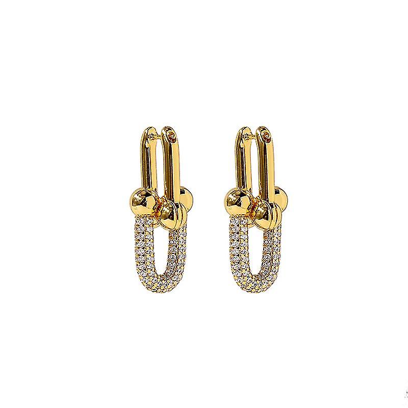 Women's Micro Diamond Double Bamboo U Shape Stud Earrings
