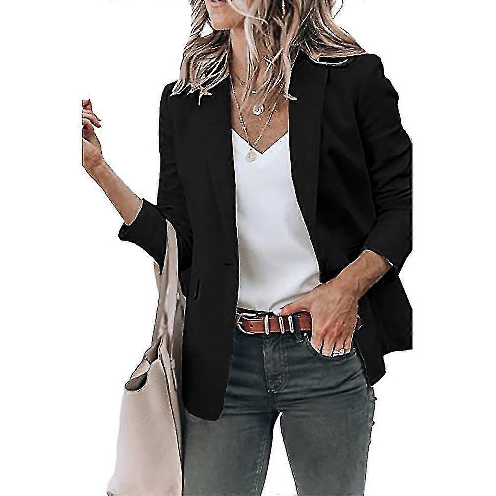 "Women's Plain Open Front Lapel Blazer Long Sleeve Work Office Cardigan Jacket"