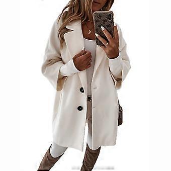 Women's Solid Color Lapel Coat With Pocket And Buttons