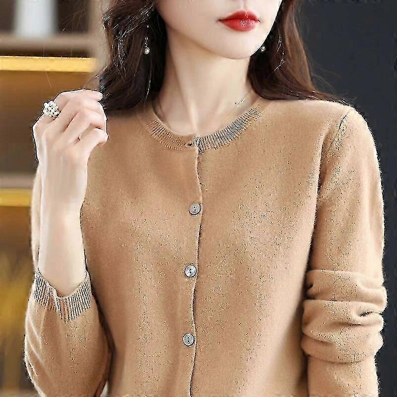 Women's Spring-Autumn Round Neck Knit Cardigan: Loose Button Sweater, All-Match Jacket with Solid Color & Basic Design(New Arrival)