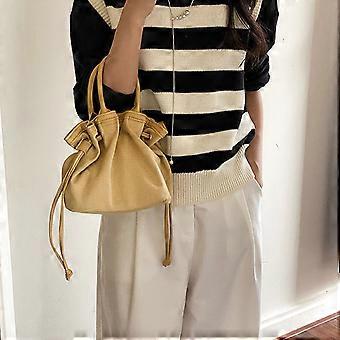 Womens Top Handle Bag Korean Styles Bucket Bag Solid Color Canvas Bag Drawstring Handbags All-Matching Shopping Bag Black