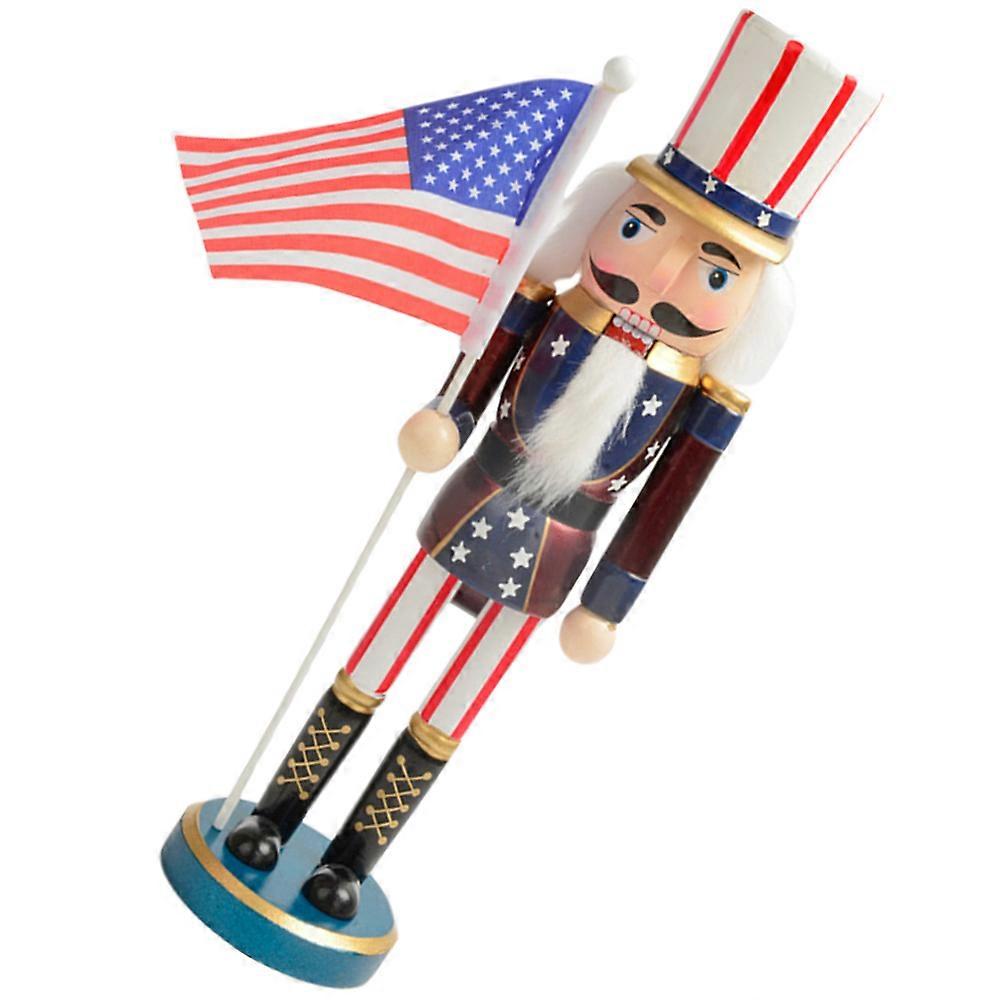Wood Nutcracker Ornament for Decor 2Pcs American Style with Flag