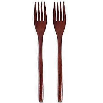 Wooden Fork Set, 2Pcs Long Handle Natural Fork for Salad Cooking Serving