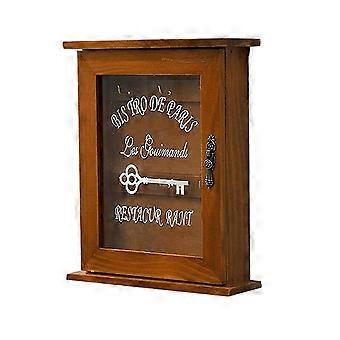 Wooden Key Box, Retro, Wall, Key Cabinet With Magnetic Door, Solid Wood Storage With 6 Hooks-a