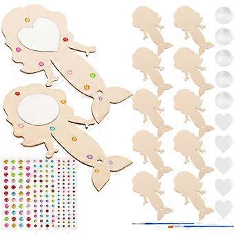 Wooden Mermaid Hand Mirror for DIY Use 3Sets in Assorted Color
