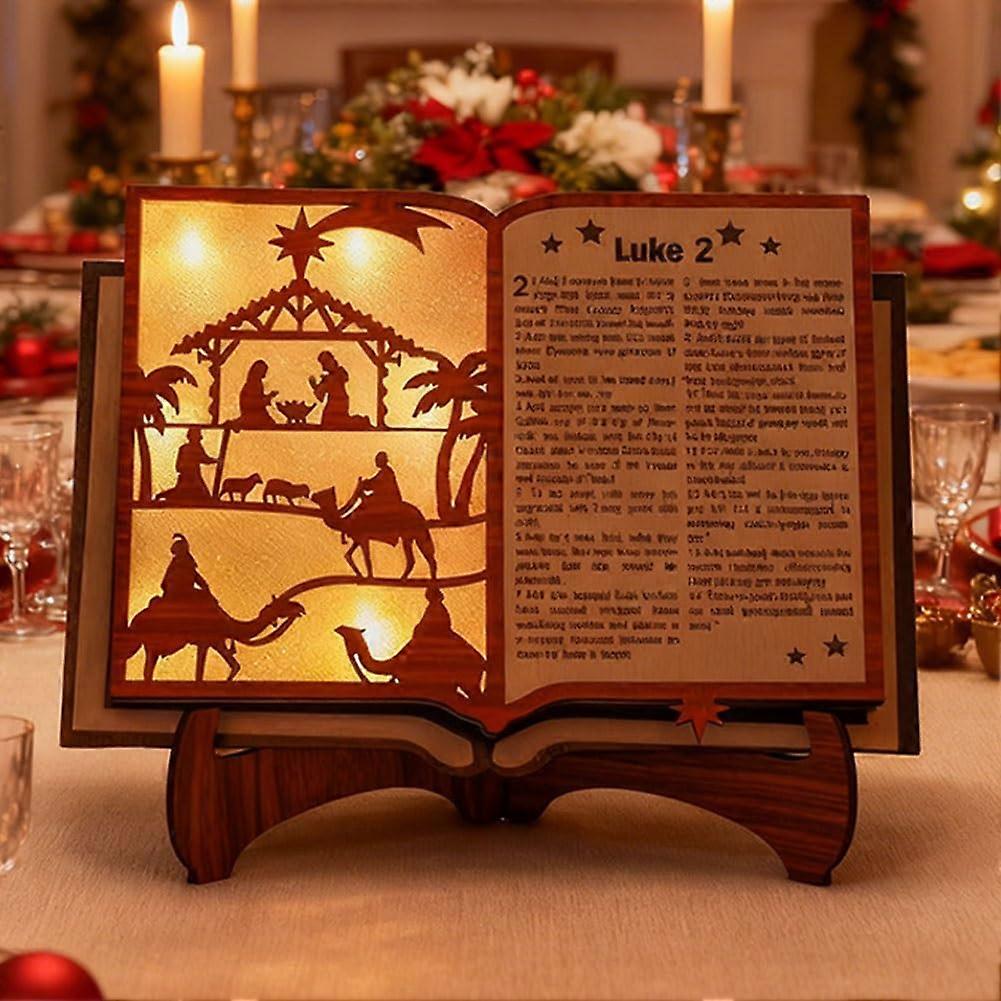 Wooden Nativity Scene with LED Lights, Handcarved Christmas Nativity Set for Table or Shelf Display