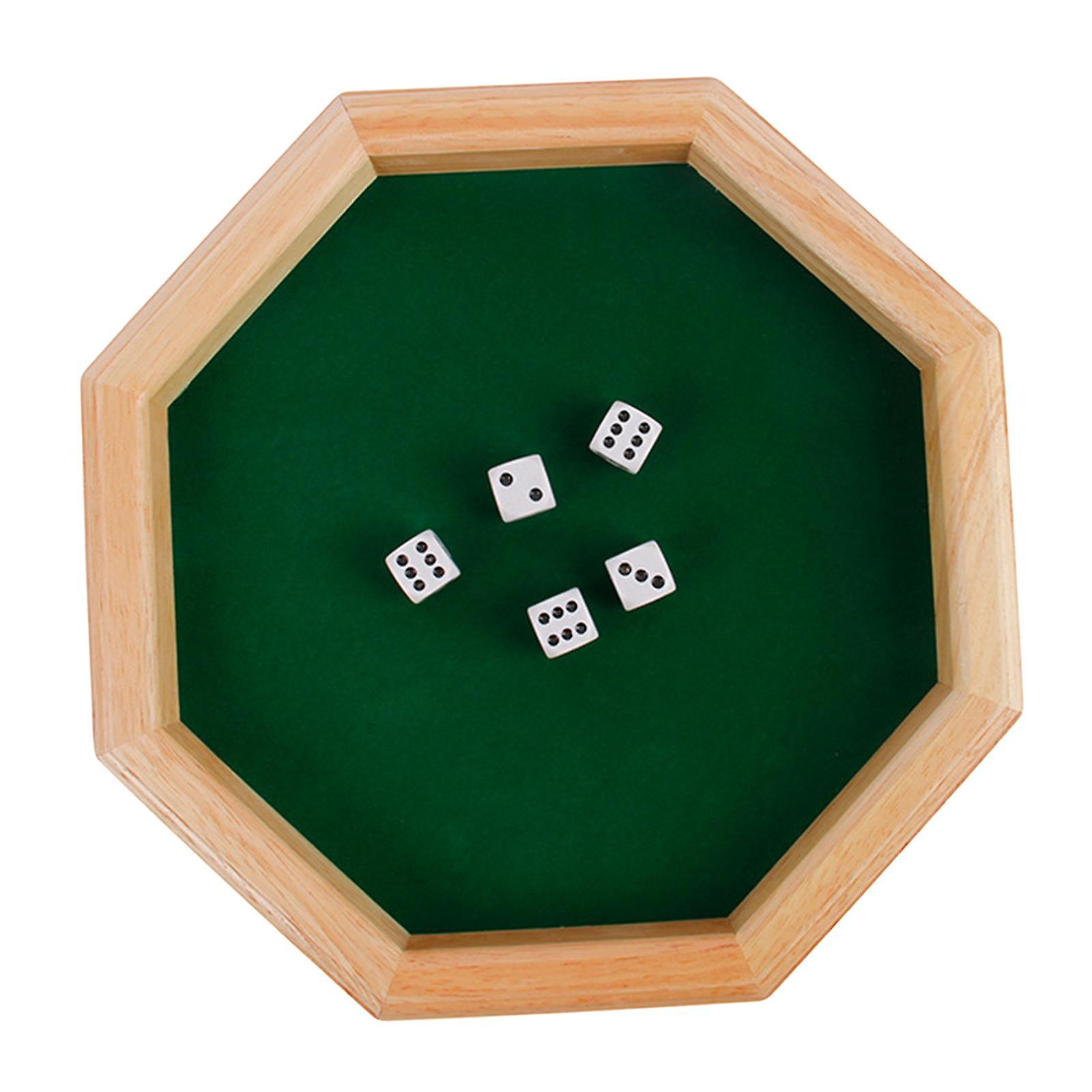Wooden Octagonal Dice Tray Board Game for Family Game Night Dice Game w/Dice