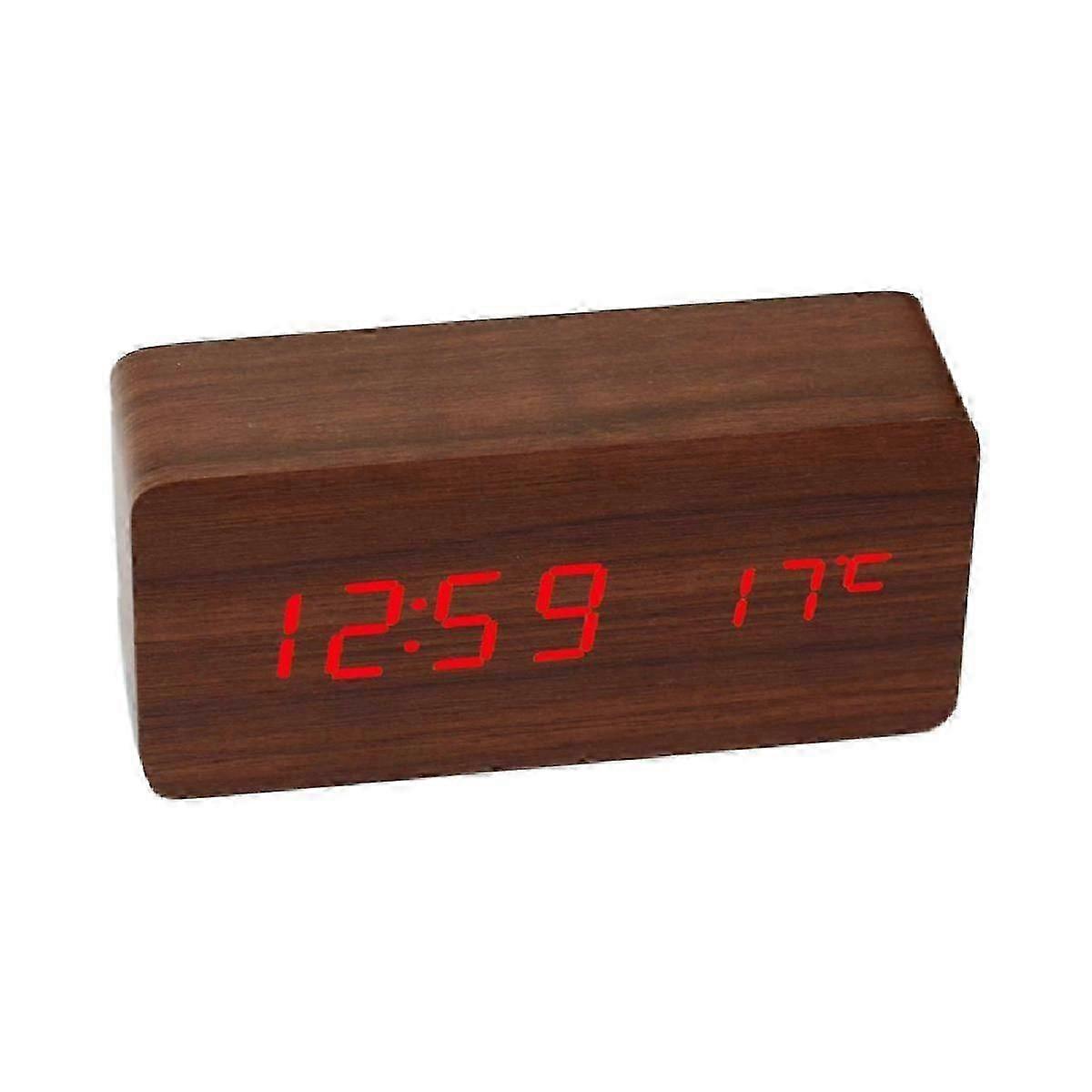 Wooden Square Desk Clock LED Digital Display Alarm Clock Temperature Display Clock for Bedroom Deco