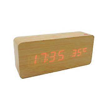 Wooden Square Desk Clock Led Digital Display Alarm Clock Temperature Display Clock For Bedroom Decoration Clock Yellow