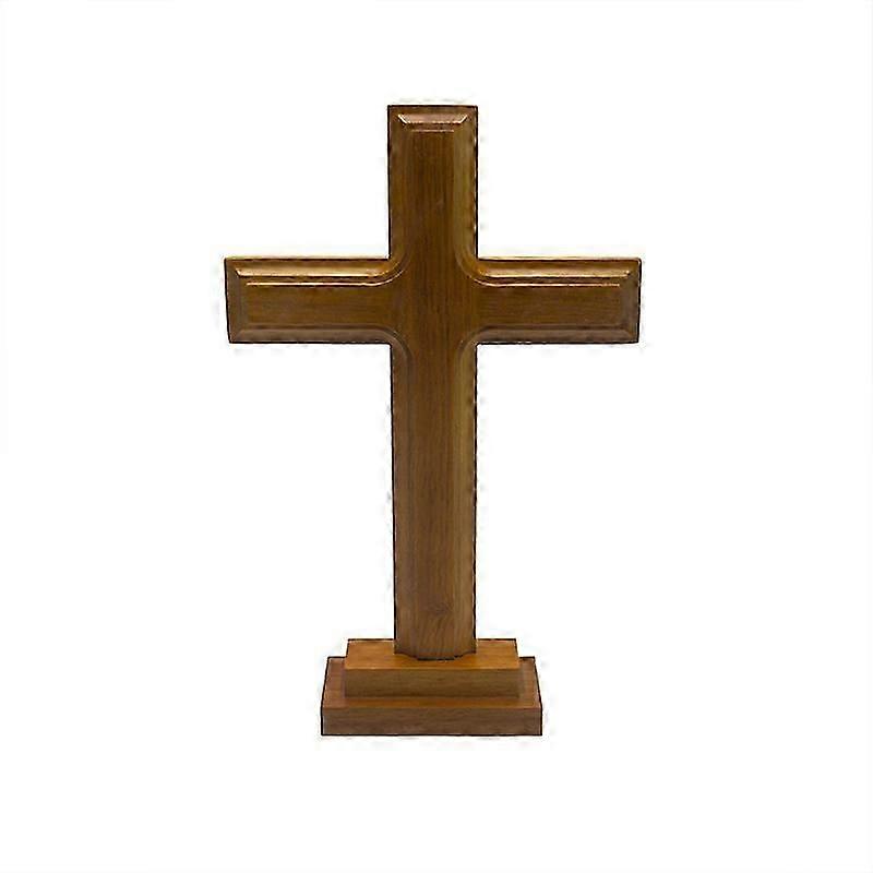 Wooden Standing Cross Decor Altar Cross With Stand Double-sided Table Cross Gift