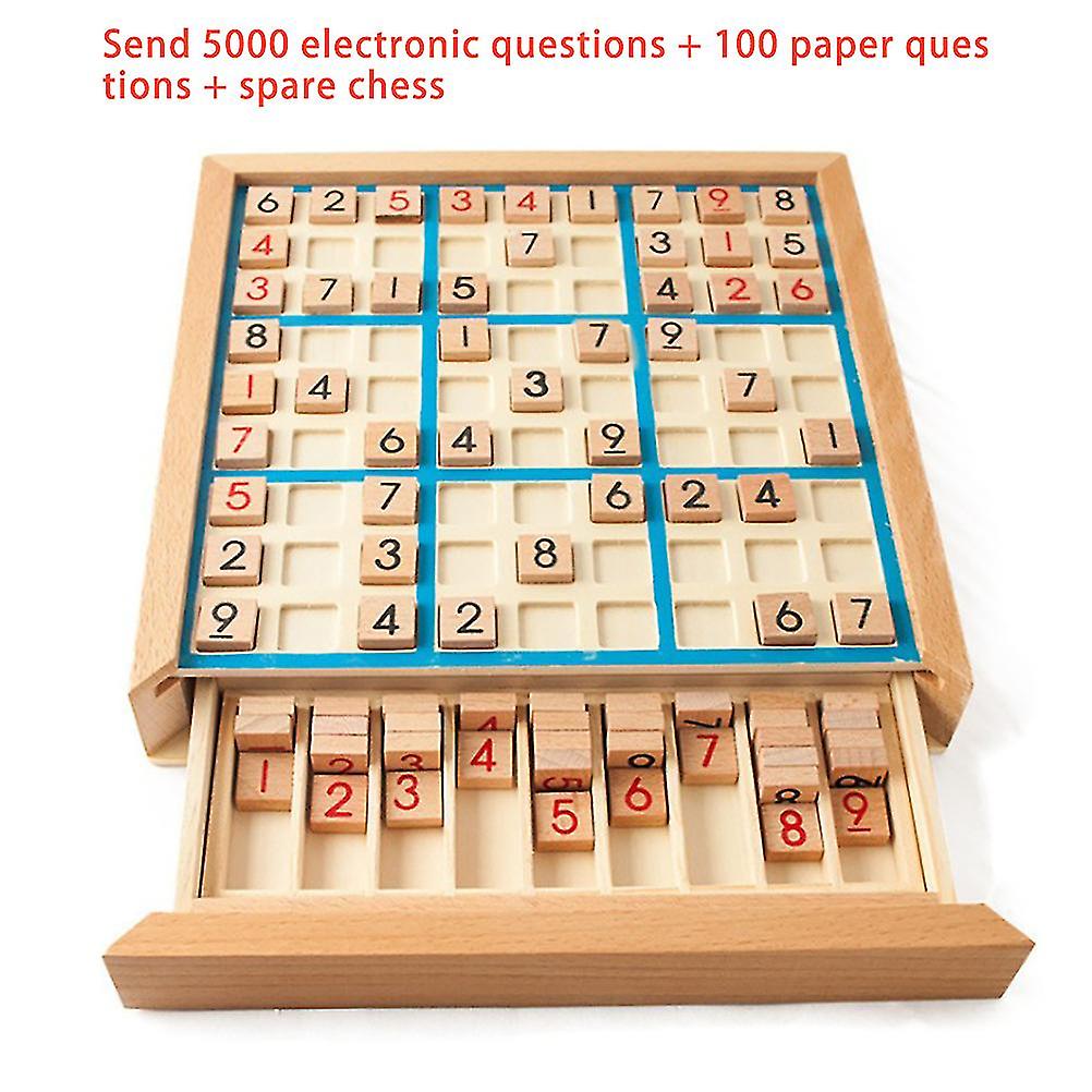 Wooden Sudoku Board Game with Drawer Math Brain Teaser Desktop Toys with Sudoku Puzzles Book