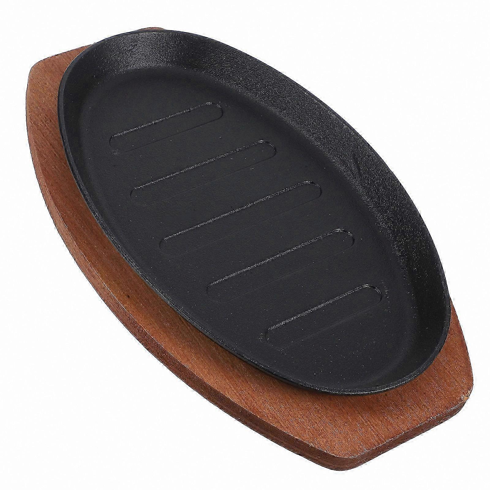Crafted from wood and iron, this grilling pan provides even heat distribution, ensuring that your food is cooked to perfection every time. Comes with a wooden tray for safe and stable use. Suitable for outdoor barbecue and cooking cheese, fried fries, steak, grilled fish, and more. Features: - Color: Assorted - Material: Wood, Iron - Size: 28.00 x 17.00 x 3.50 cm / 11.00 x 6.68 x 1.38 in - Simple yet practical design, built to last for years - Made of durable materials with a smooth, dirt-resistant surface that is easy to clean - Elegant look with fine workmanship for both functionality and style - Sturdy construction, resistant to wear and tear Package List: 1 x Steak Plate 1 x Base