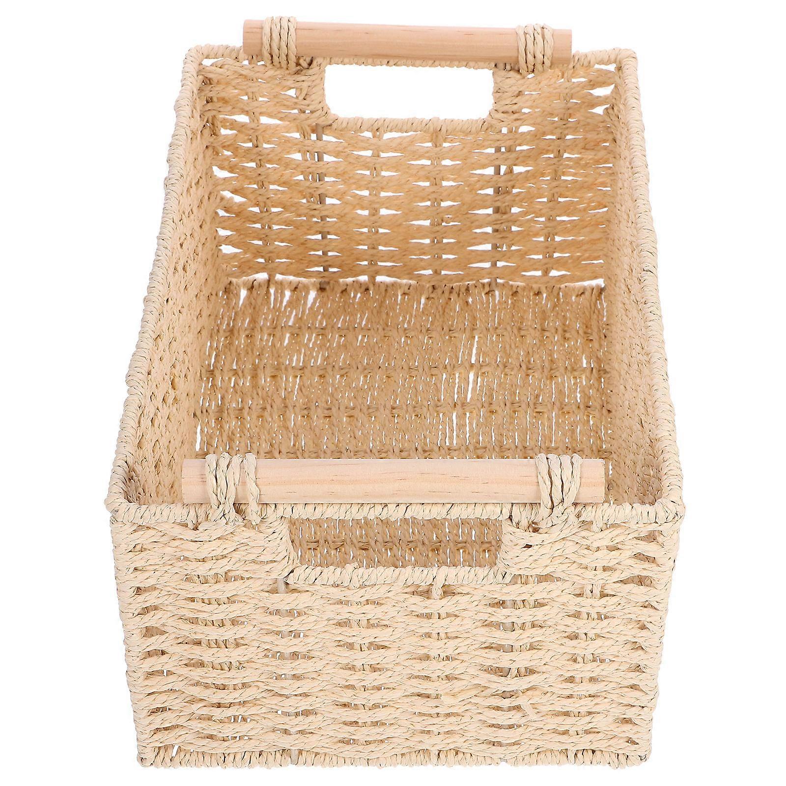 Woven Desk Basket Organizing Baskets Office Use Rectangular Simple Design 12.2×8.3×6.7in Space-saving 1Pack