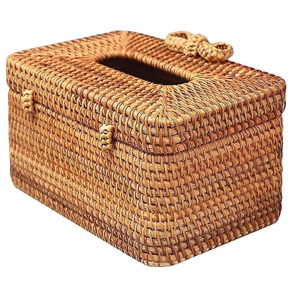 Woven Tissue Box Paper Towel Organizer Rectangular Shape Home Use 7.5x5.1x8.7in Set Of 2Pcs
