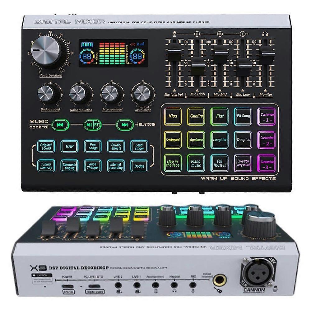 X9 Bluetooth-Compatible Audio Mixer with XLR 48V Phantom Power 4-Channel USB Sound Card Voice Changer