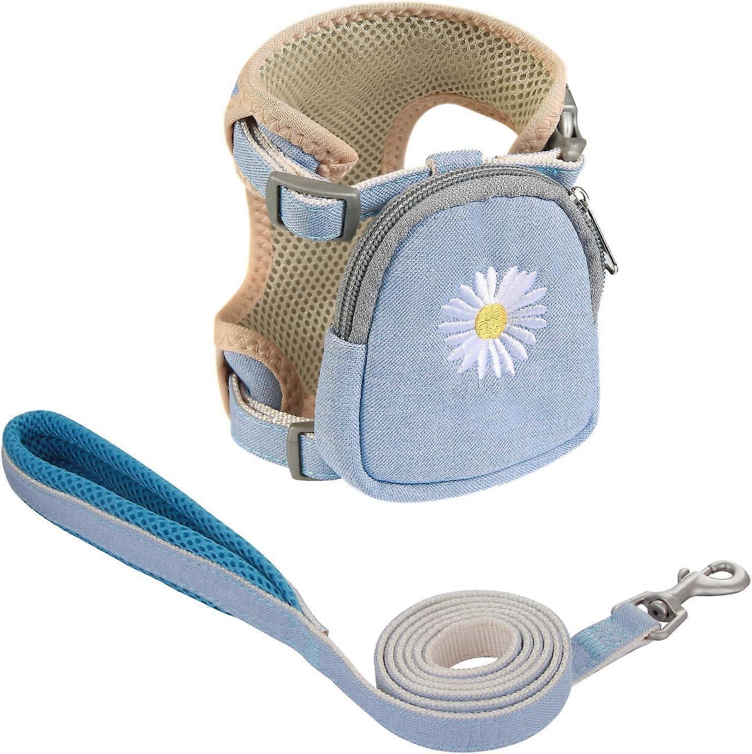 XHX Adjustable Puppy Leash for Cat Carrier, Runaway Cat Carrier Set, Removable Top Pouch, Storage, Blue (M)