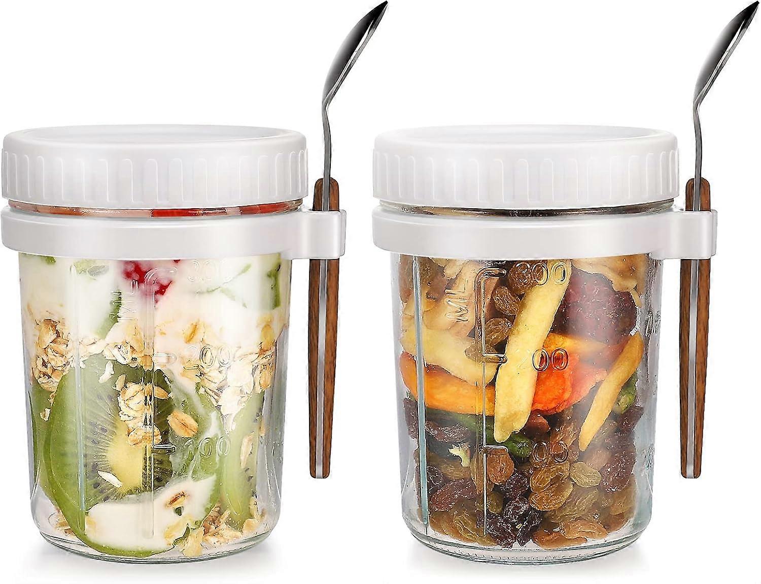 Xigugo Overnight Oats Jars, Overnight Oats Container with Lid and Spoon, 16 oz Cereal, Milk, Vegetable and fruit Salad Storage Container with Measurem