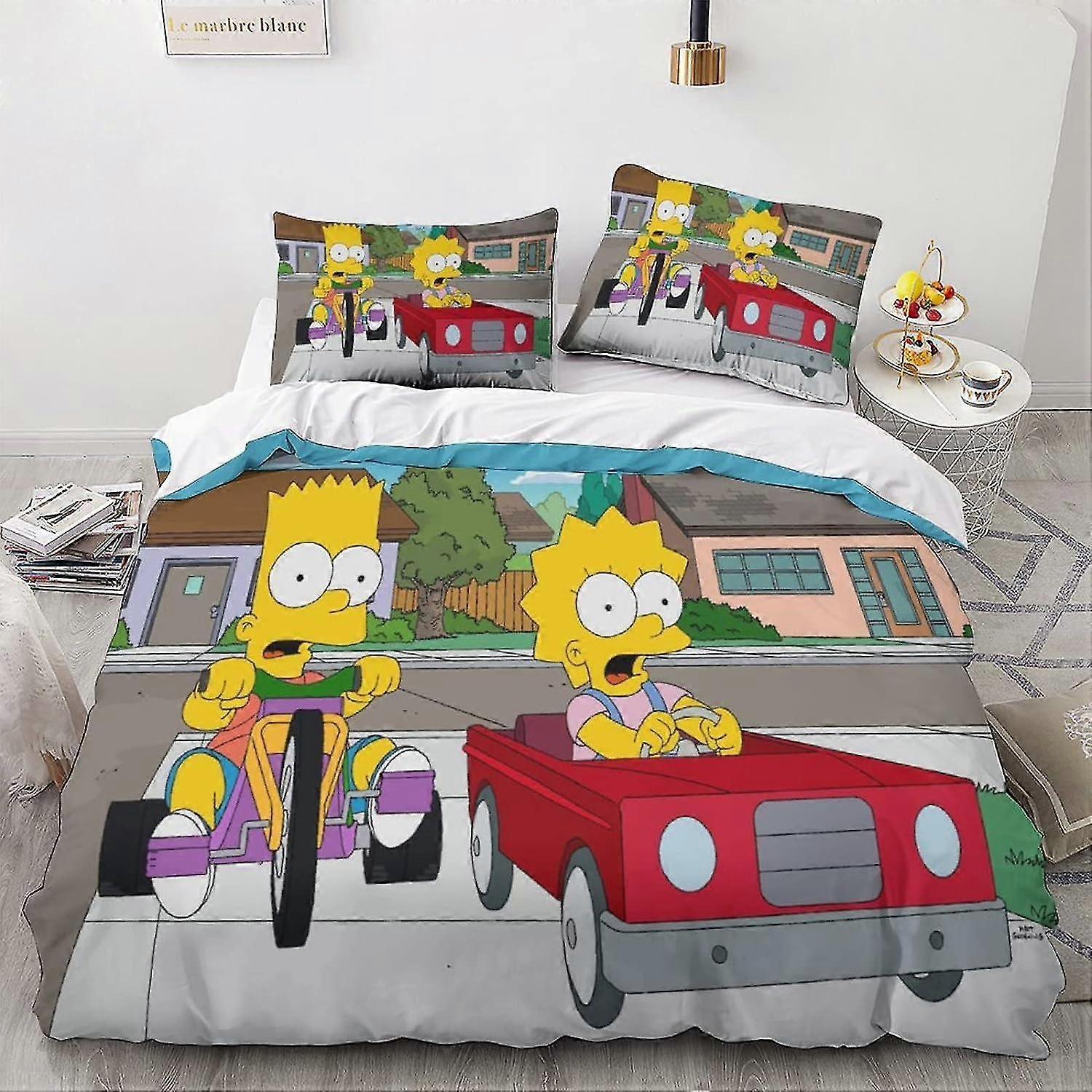 ZELLART The Simpsons Bedding Set with 3D Print Comforter Cover and Pillowcase for Kids, Soft Microfiber Bedspread, Zipper, 3 Pc