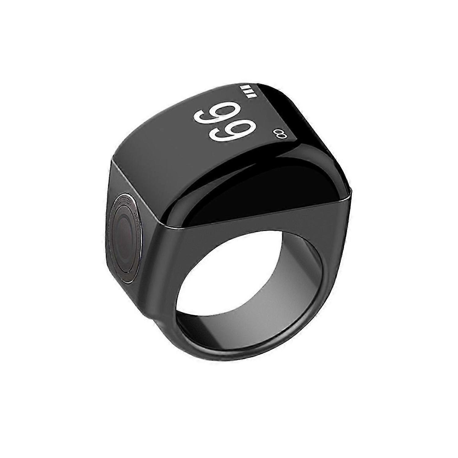 Zinc Alloy Smart Ring+Charging Box Waterproof Digital Counter APP Controlled Display 5 Prayer Time Reminders Black,18mm