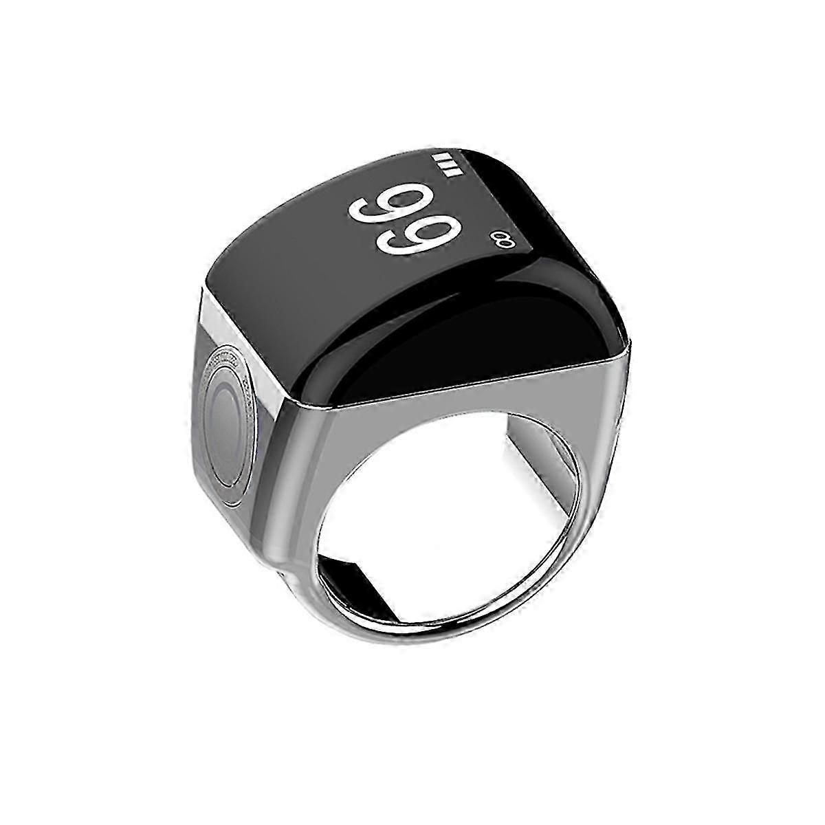 Zinc Alloy Smart Ring+charging Box Waterproof Digital Counter App Controlled Display 5 Prayer Time Reminders Silver,18mm