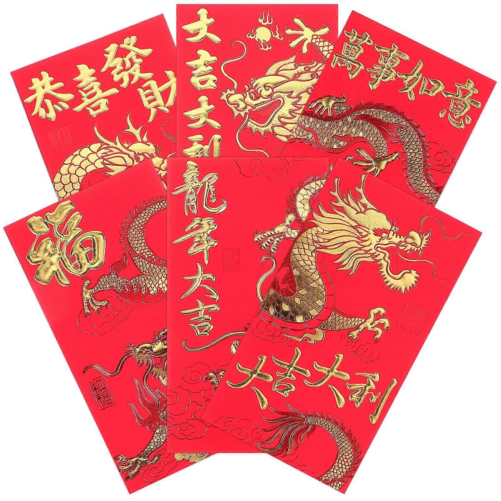 Zodiac Delicate Pattern Red Envelopes 6Pcs Assorted Color Gift Container Special Occasions 17X9Cm