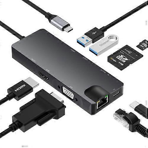 ZRUXE HB-298 8 in 1 Type-C to HDMI + Vag Gigabit RJ45 + USB3.0 Docking Station